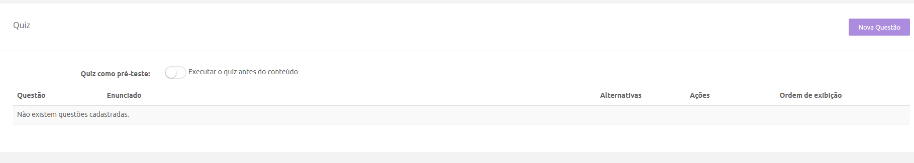 Ao finalizar o cadastro de questões, você também poderá optar por utilizar o quiz que você acabou de cadastrar como pré-teste. Isto significa que o aluno, quando acessar a pílula, realizará primeiro o pré-teste, em seguida o conteúdo e para finalizar o pós teste, ou seja, o mesmo quiz que respondeu no início. Isto poderá ser usado para medir a evolução de conhecimento sobre determinado assunto. Você poderá verificar o quanto o aluno conhecia sobre o assunto antes de consumir a pílula e o quanto ele absorveu ao consumir a pílula.
