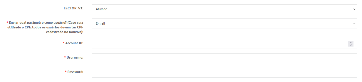 Username: Aqui deve estar o nome de usuário da conta Lector.