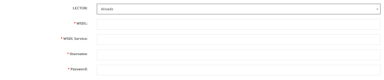 WSDL e WSDL Service: informações fornecidas pelo Lector para configuração da conta Lector com o Konviva.