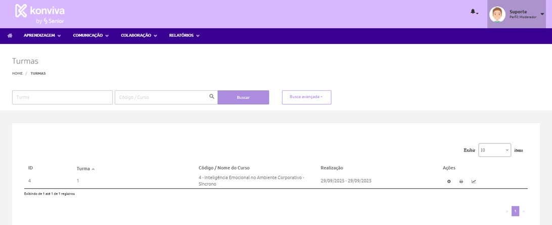 Turmas: uma outra maneira de visualizar as turmas em que é moderador;