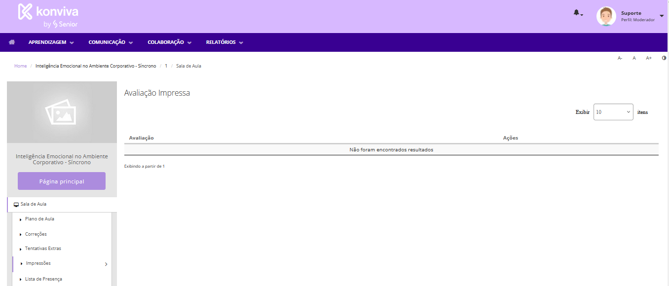 No menu APRENDIZAGEM, o moderador consegue ter acesso a: