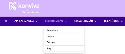 No menu COMUNICAÇÃO, o moderador tem acesso aos módulos: