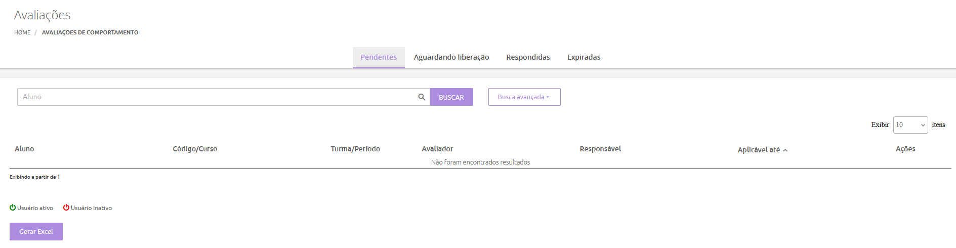 Em "Pendentes" ficarão todas as avaliações disponíveis para o Gestor realizar.
