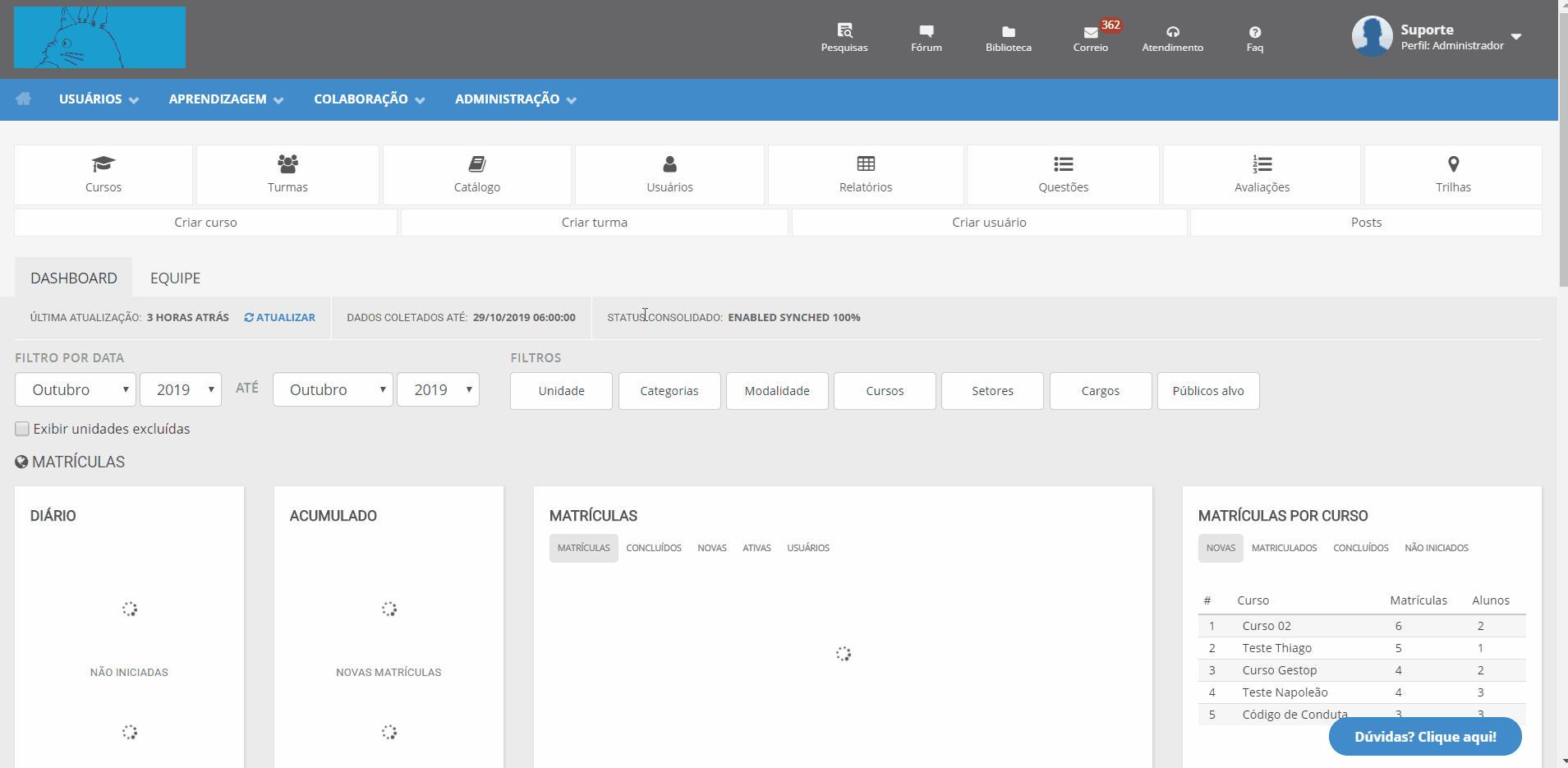 Conteúdo excluído: Quando um conteúdo é excluído do Curso, todo registro de acessos, aproveitamento dos alunos para aquele item, são apagadas.