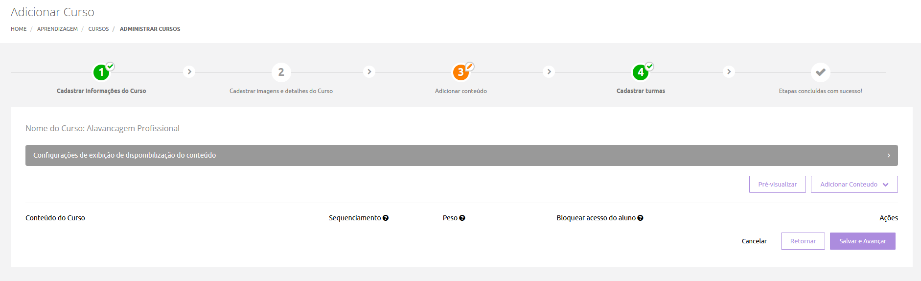 Disponibilizar o acesso apenas desse conteúdo deste curso no aplicativo: se o administrador utilizar o aplicativo da Konviva, e quiser que apenas esse conteúdo fique visível nele para os alunos, ele pode selecionar essa flag.