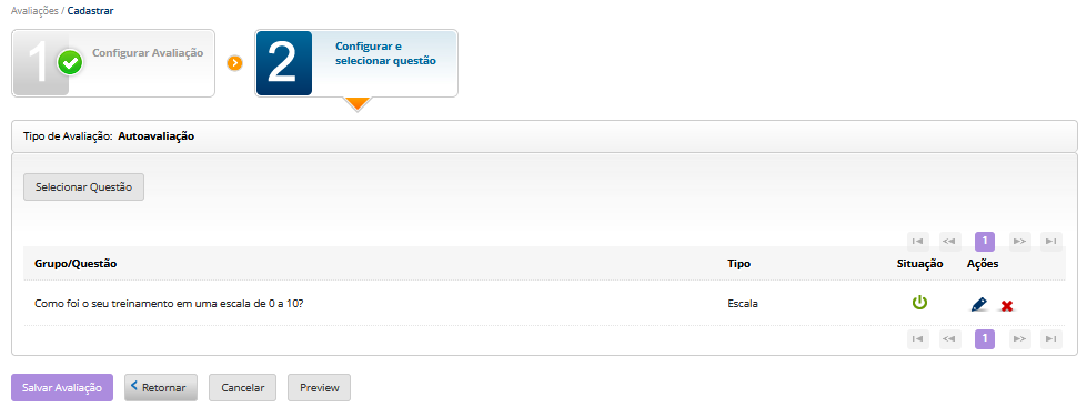 Etapa 1 - Configurar Avaliação