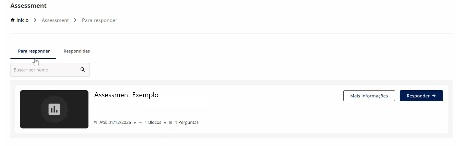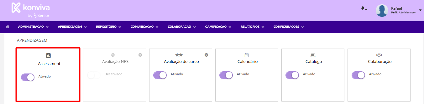 Após a ativação do módulo de Assessment, será disponibilizado no ambiente um novo menu chamado Assessment.