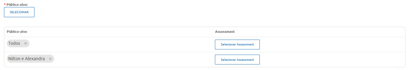 Caso selecione mais de um público, será possível definir qual assessment cada público deverá responder: