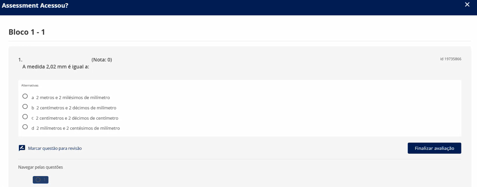 ATENÇÃO: Atualmente, no assessment não é possível configurar o número de tentativas do aluno, que é limitado a apenas uma. Além disso, não há opção de incluir um temporizador para a realização do assessment.