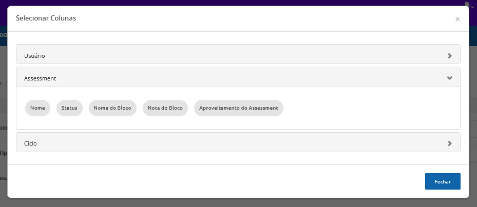 Foi disponibilizado um novo tipo de relatório personalizado para o assessment.