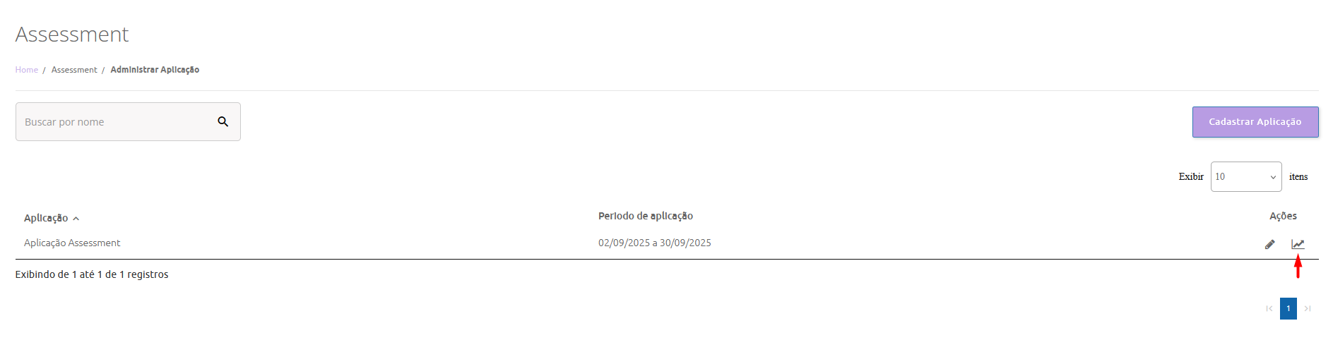 Você pode acessá-lo pelo menu Assessment > Administrar Aplicação e clicando na ação “Dashboard” da aplicação que deseja acompanhar.