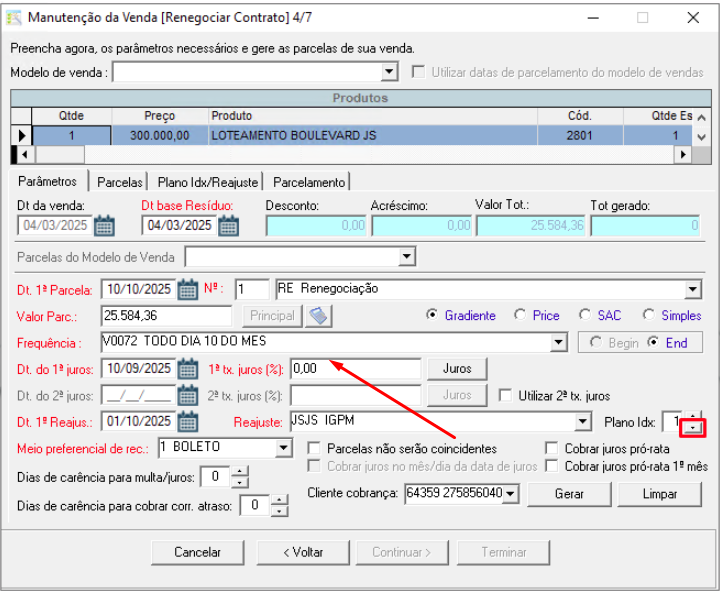 7. Selecione o novo plano indexador / Clique em Gerar: