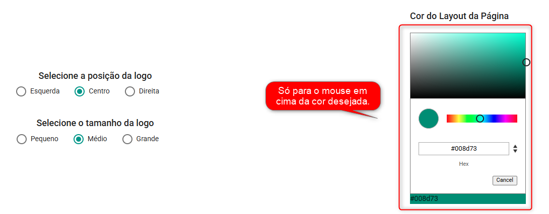 2.1. É possível selecionar a posição do logo e o tamanho: