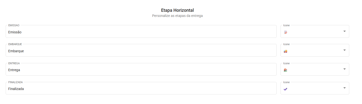 3. Etapa horizontal, personalize as etapas da entrega: