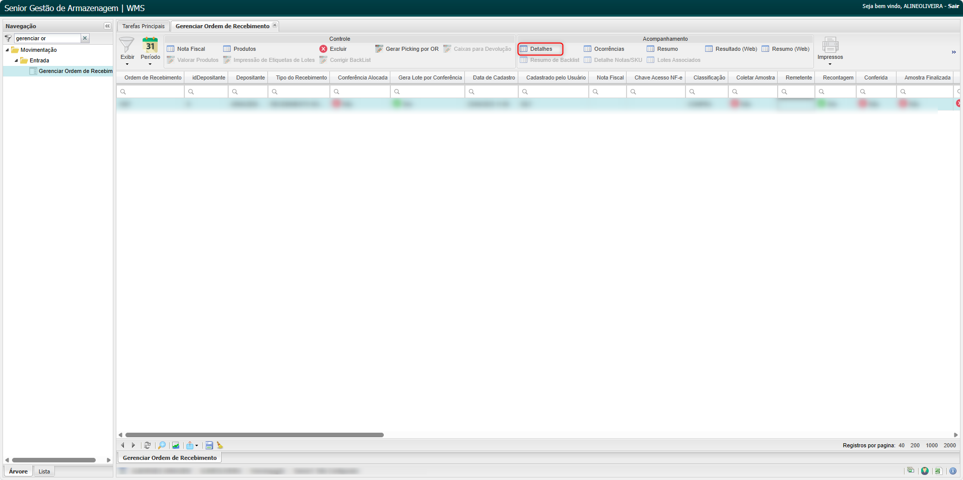 Para visualizar os detalhes da conferência para a ordem de recebimento, realize os passos a seguir: