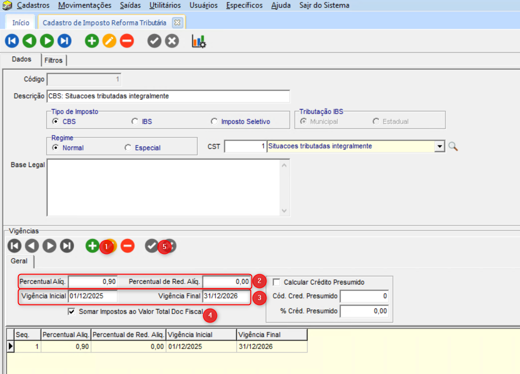 4.7. A Base Legal será definida automaticamente a partir do CST selecionado;