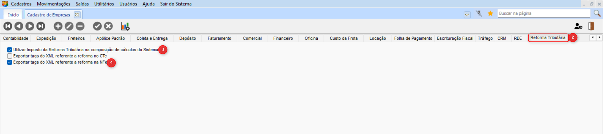 2.4. Marque a opção 'Exportar tags do XML referente a reforma no NFe':