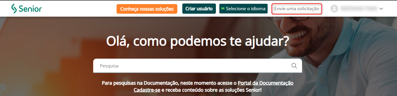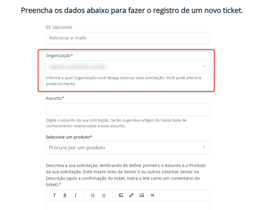 Importante: Para Canais de Distribuição, Consultores, Gerentes/Analistas de Projeto e demais colaboradores da Senior, o campo Cliente é habilitado no início do formulário.
