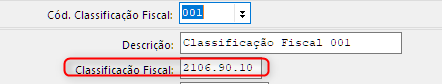 1.1. Cadastre um novo código de classificação fiscal que contenha o mesmo NCM no campo 'Classificação Fiscal':