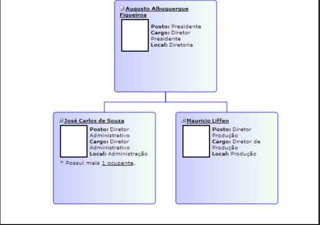 2º As fotos foram importadas para o sistema em um formato diferente da extensão JPG, sendo assim, elas podem constar na Ficha Básica do Colaborador e ainda na tabela R034FOT, porém não serão apresentadas na Consulta de Hierarquia de Postos, porque somente estão previstos os arquivos em formato JPG.
