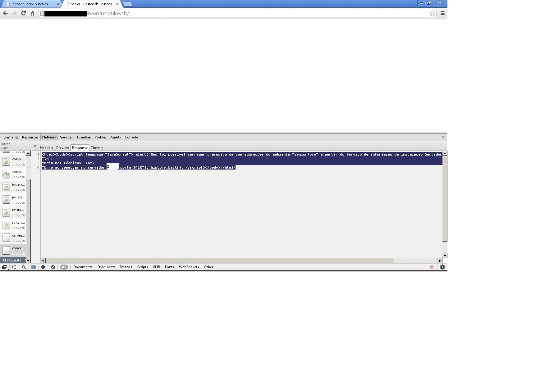 Na aplicação Currículo Web do módulo Recrutamento e Seleção ao tentar acessar a página inicial que exibe as informações para acessar o currículo é exibida tela em branco: