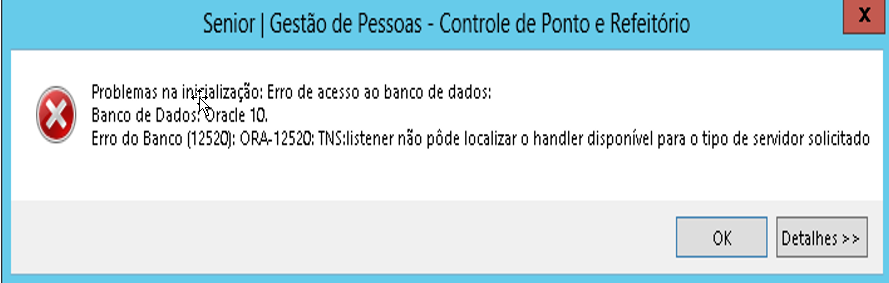 Erro do Banco (12520):ORA-12520: TNS:listener não pôde localizar o handler disponível para o tipo de servidor solicitado.