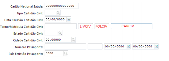 Quando ocorre / onde se aplica: Cadastro de Certidão Civil na ficha complementar do colaborador para emissão de documentos.
