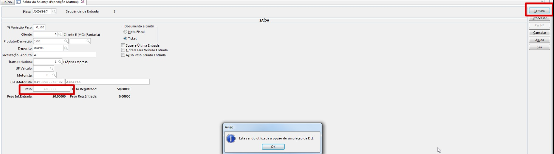 Quando ocorre / onde se aplica: Telas de Saída via Balança.
