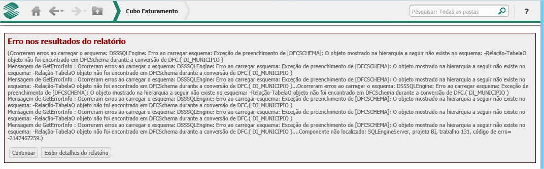 Quando ocorre / onde se aplica: MicroStrategy WEB / Publicar cubo