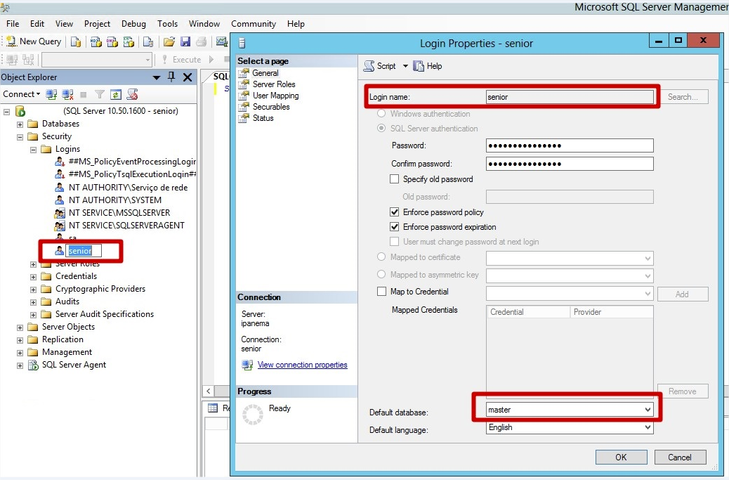 Se o usuário estiver com o database padrão master, as tabelas não serão encontradas.
