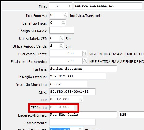 1- É verificado o valor do campo E070FIL.CepIni (Campo em destaque abaixo da tela de cadastro da filial).