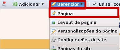 - Acessar como admin e ir até o menu: Gerenciar -> Página: