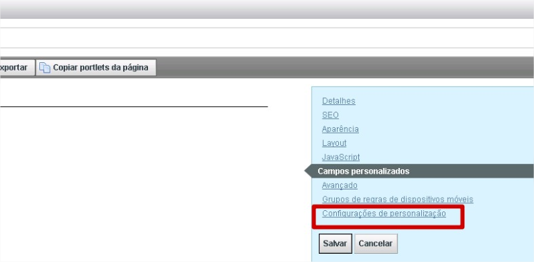 - No menu do lado direito clicar em Configurações de Personalização :