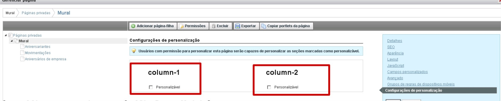 - Caso exista a opção Personalizável habilitada, desabilitar, salvar e acessar a página com um usuário comum.