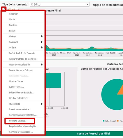 2) Selecionar o gráfico que deseja alterar a fonte e clicar com o botão direito sobre o ícone e escolher a opção Formato Gráfico...;