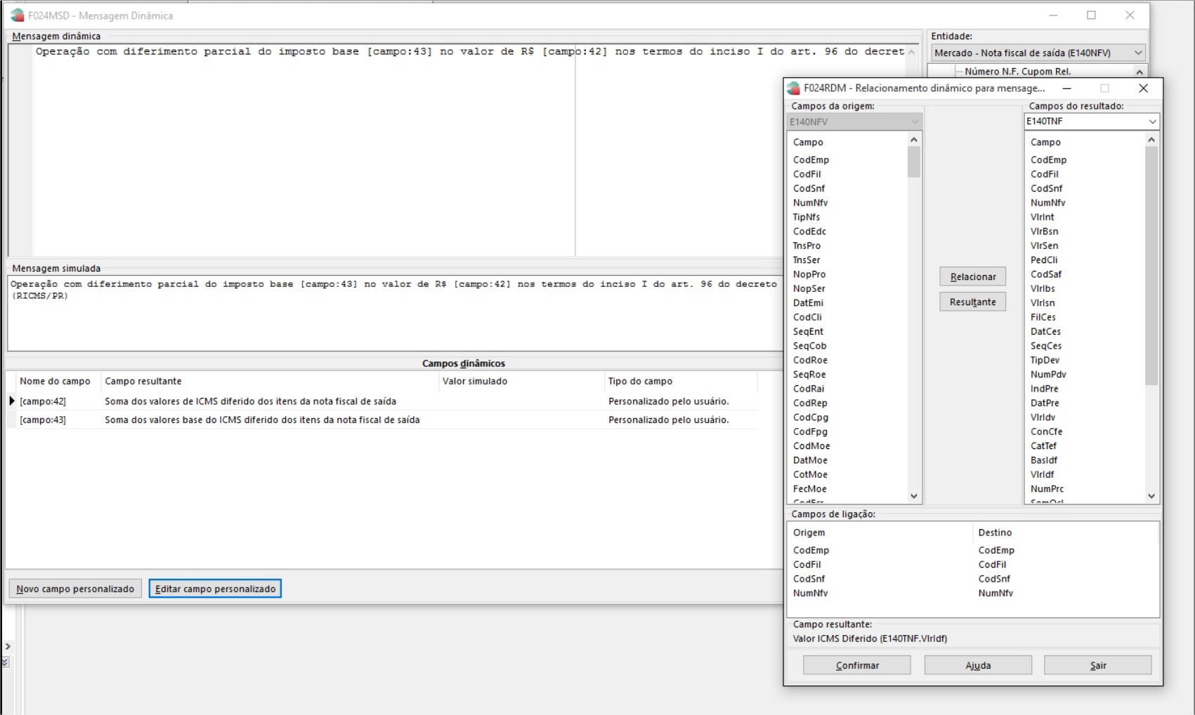 2.4 Selecionar o campo E140TNF.VlrIdf como campo resultante* e confirmar.