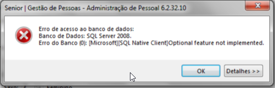 Problema: Ao tentar alterar qualquer informação na ficha cadastral do empregado ocorre o erro : Optional feature not implemented.