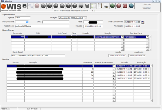 WMS WIS FORMS – Processos - Como consultar a tela de digitação de notas fiscais em Processos