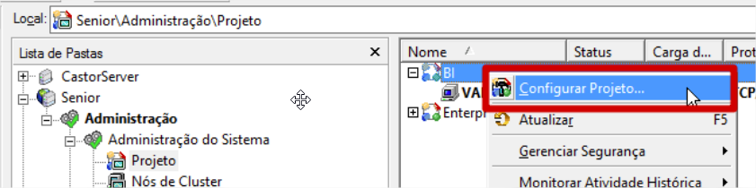 3 - Vá até a tela Senior > BI > Objetos Públicos > Relatórios e clique com o botão direito em Web e Tablets. Selecione a opção Propriedades;