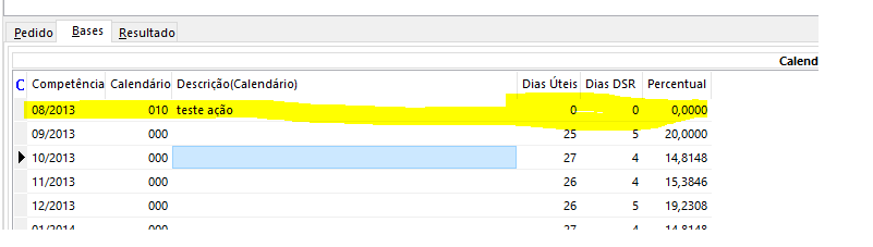 Problema: Ao calcular uma ação trabalhista, não está trazendo na aba Bases, item Calendário, a informação do calendário referente a competência 08/2013. Em virtude disto, está correndo o erro: Não foi encontrado o percentual do calendário de repouso para ser utilizado no cálculo do reflexo de DSR (competência: 08/2013).