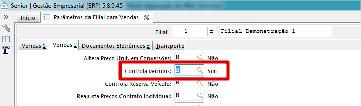 Deve-se alterar o campo Controla veículos para SIM.