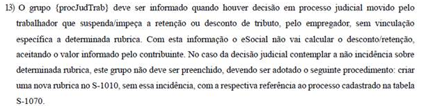 Para o eSocial, levaremos a informação que o empregado tem Processo contra INSS ou IRRF, e o governo irá aceitar o desconto que fizemos para o recolhimento da parte do segurado e aplicará a parte empresa normalmente, conforme MOS 2.4.
