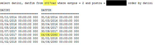 Solução: Identificamos que haviam diversos históricos na característica de posto em Tabelas > Postos de Trabalho > Postos, onde um dos históricos do passado estava com data de término = 04/06/2080. E o correto seria ter data termino anterior a data de início do próximo histórico. Após efetuar o ajuste a geração do cenário foi executada sem erros.