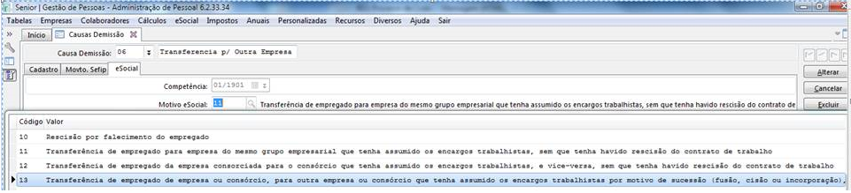 Qual Causa de demissão utilizo?
