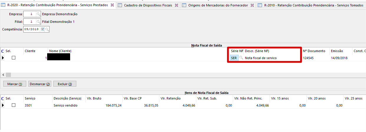 Exemplo de uma nota fiscal integrada com a série legal preenchida no cadastro: