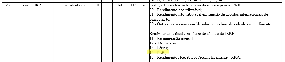 Neste caso, como o evento de PLR possui tributação de IRRF, ele acaba caindo no CodIncIRRF acima (14 - PLR), por este motivo o eSocial recusa o recebimento desta informação.