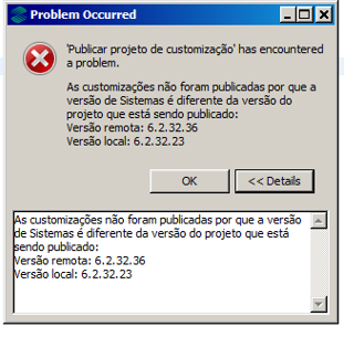 23148 - As customizações não foram publicadas / Publicar projeto de customização