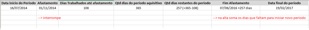 23389 - Como calcular Período Aquisitivo com Perda Direito de Férias = I - Afastamento