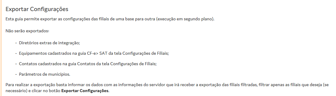 2. Utilizar o recurso disponível na configuração da empresa, guia filiais > exportar configurações.