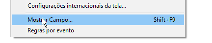 Esta alteração pode ser realizada em qualquer tela do sistema que possua disponível o recurso Mostrar Campo... ao clicar com o botão direito do mouse sobre a tela: